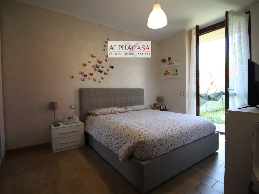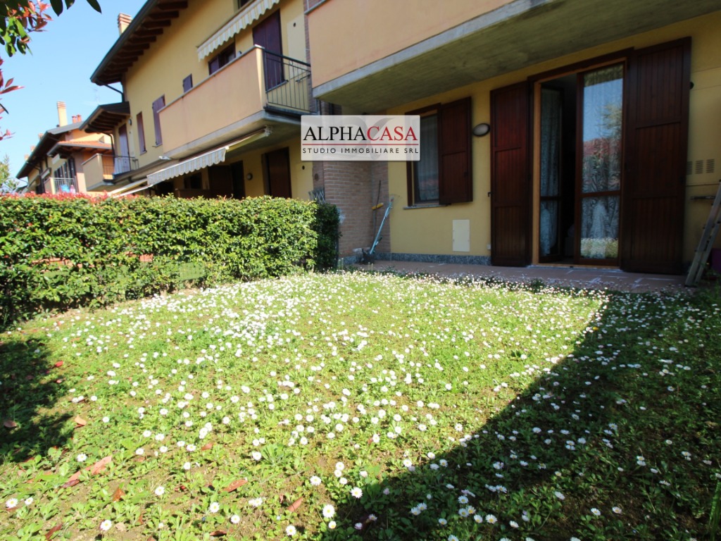 Bonate Sopra proponiamo in vendita spettacolare bilocale in villa, ingresso indipendente con giardino privato fronte e retro, soggiorno con angolo cottura, disimpegno con attacco per lavatrice ed asciugatrice, camera matrimoniale e bagno finestrato con doccia. Al piano interrato autorimessa doppia in lunghezza dove si è ricavato anche un comodo ripostiglio. Qualche breve informazione: predisposizione allarme e aria condizionata, bagno rifatto nel 2016, pavimento della camera in gres porcellanato effetto parquet fatto nel 2023, zanzariere, caldaia esterna con riscaldamento termosifoni. Compreso nel prezzo arredo cucina/soggiorno, camera e bagno. Libero da settembre 2026 Spese condominiali 330 euro + consumo acqua per un totale da ultimo verbale pari ad 470 annue. Classe energetica in fase di rilascio.