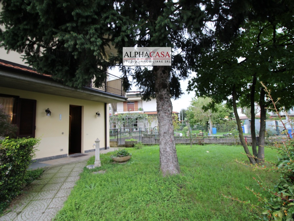 Alpha Casa Studio Immobiliare propone in vendita in zona prettamente residenziale del paese, in strada a fondo chiuso, spettacolare villetta di testa completamente indipendente. Soluzione libera su tre lati, ingresso sia pedonale che carrale privati con nessuna spesa condominiale. Villetta costruita nei primi anni '90, abitata sempre della stessa famiglia, disposta su due livelli fuori terra e un ampio piano interrato il tutto collegato da scala interna in muratura. Al piano terra troviamo un ampio soggiorno e cucina separata abitabile e un bagno di servizio finestrato, piano primo composto da due camere matrimoniali (di cui una con balcone), una camera singola e una ampia sala da bagno con vasca e comodo balconcino. Al piano interrato locale pluriuso di notevole metratura (utilizzata come taverna attrezzata), lavanderia con doccia e locale caldaia (caldaia a condensazione sostituita nel 2022). Dal locale pluriuso si accede direttamente all'autorimessa di ben 45 Mq doppia in larghezza con doppia basculante e cantina. Da non sottovalutare anche la parte di giardino sfruttabile sui 2 lati della casa. L'immobile è già dotato di aria condizionata in cucina e camera matrimoniale, allarme perimetrale. Non esiste condominio e quindi zero spese comuni. Per maggiori informazioni e/o visite chiamateci 035.590.73.73